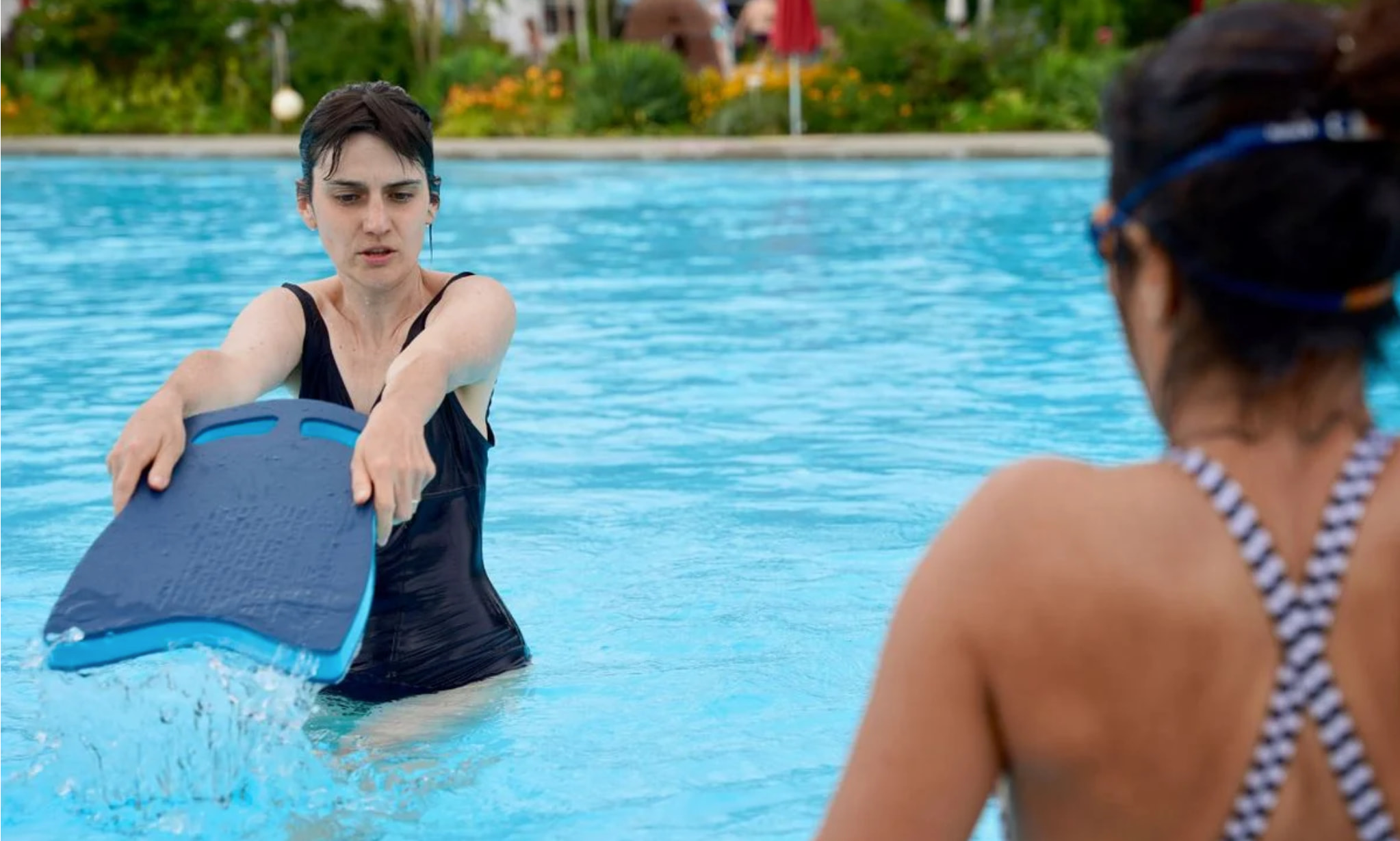 - Ihr trefft euch nach Absprache in einem Hallen- oder Freibad mit Nichtschwimmerbereich.